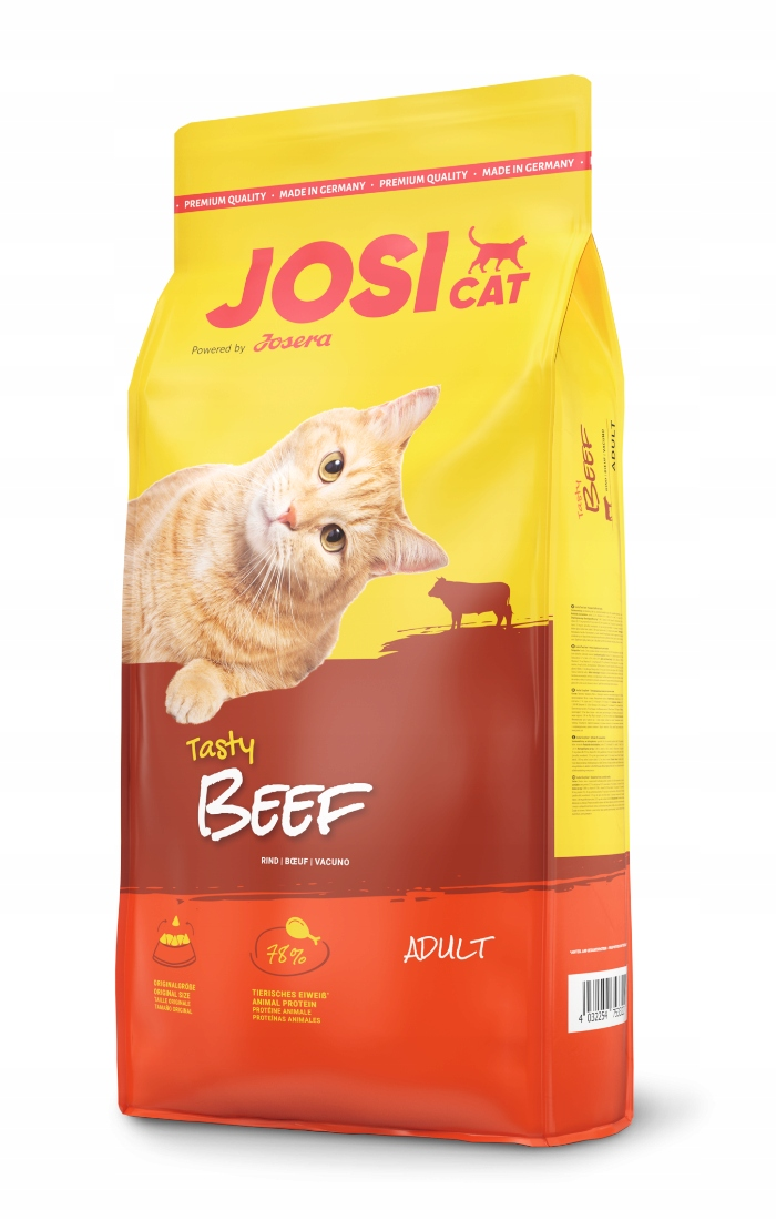 Josera JosiCat Tasty Beef z pyszną wołowiną to pyszny posiłek dla kotów lubiących wołowinę. Karma jest idealna dla kotów o normalnej lub obniżonej aktywności. Ze względu na wyważoną recepturę idealnie nadaję się dla kotów wychodzących, jak i dla kotów przebywających w domu i dostarcza im wszystkie niezbędne składniki odżywcze.